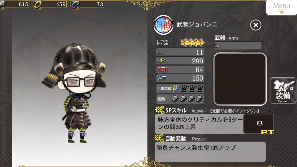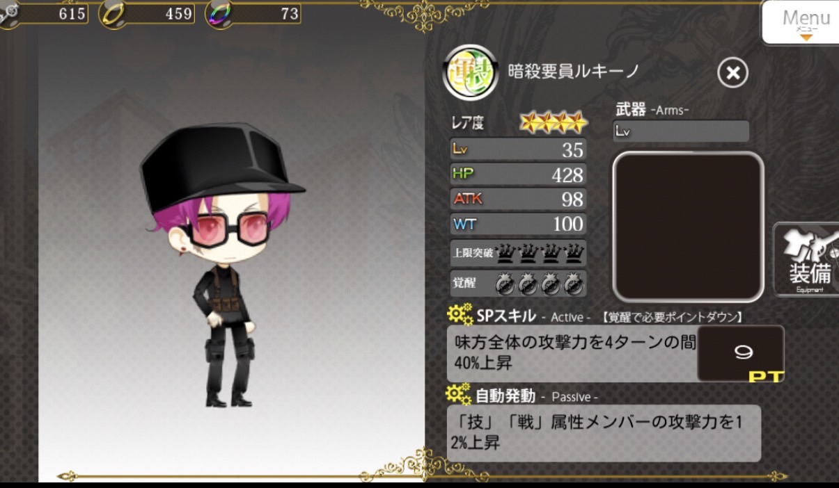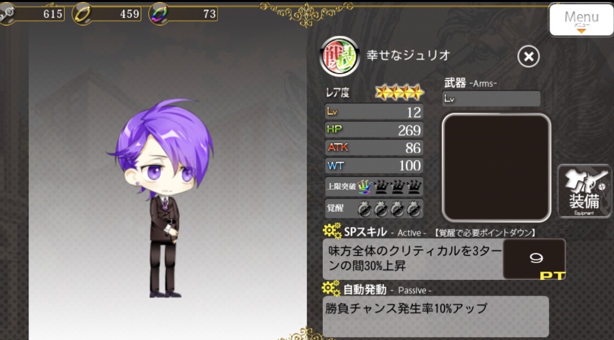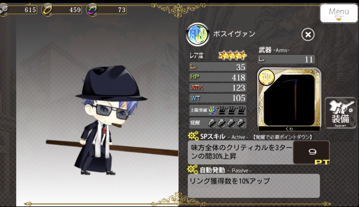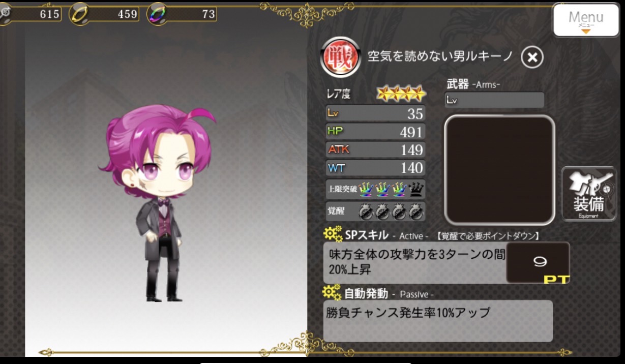 - 武器は「ATKが高く、WTが低い」ものを装備させましょう。